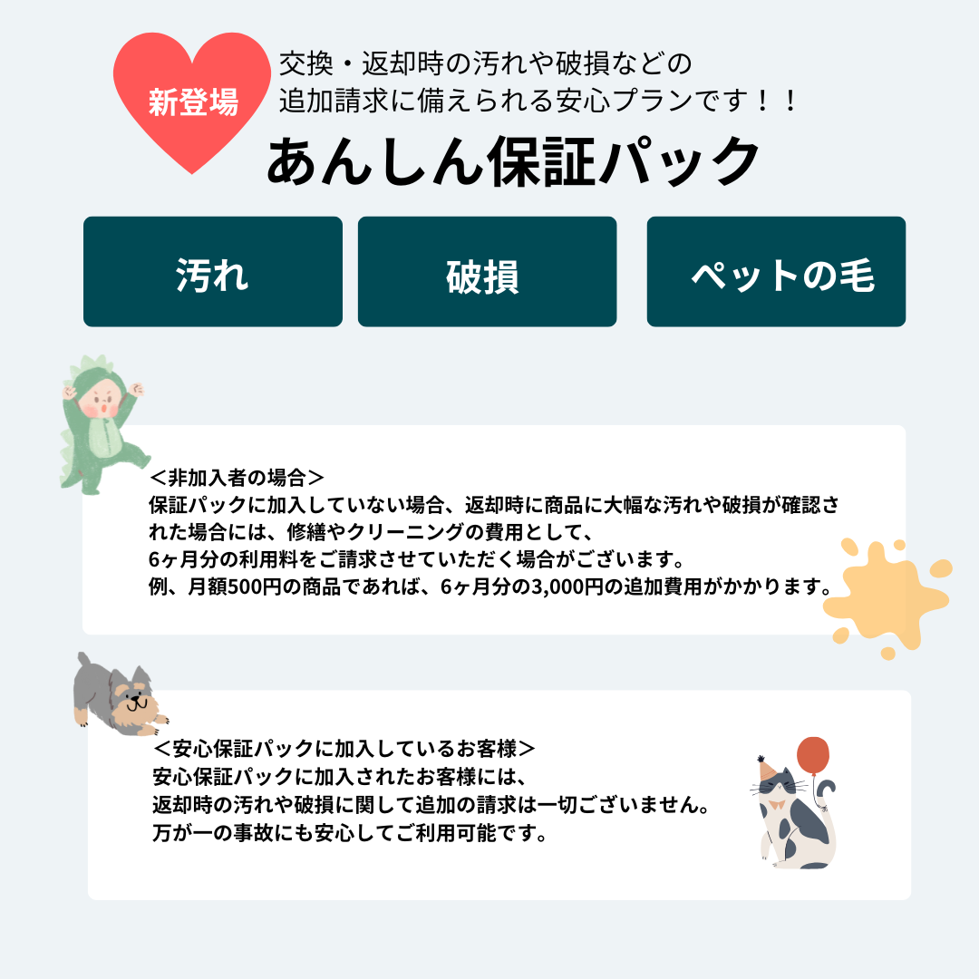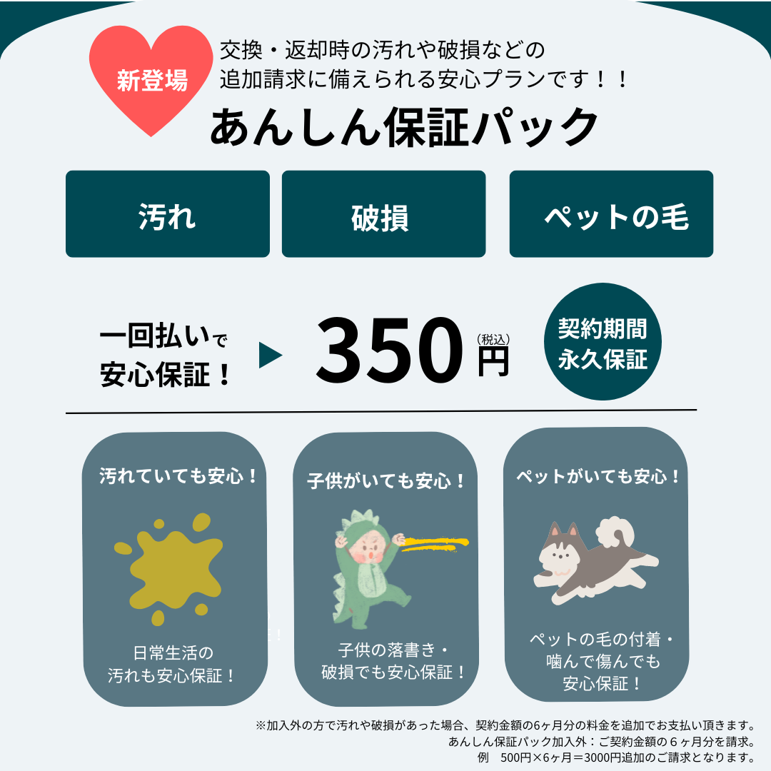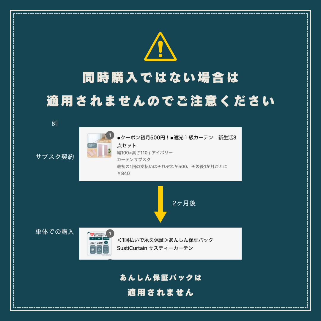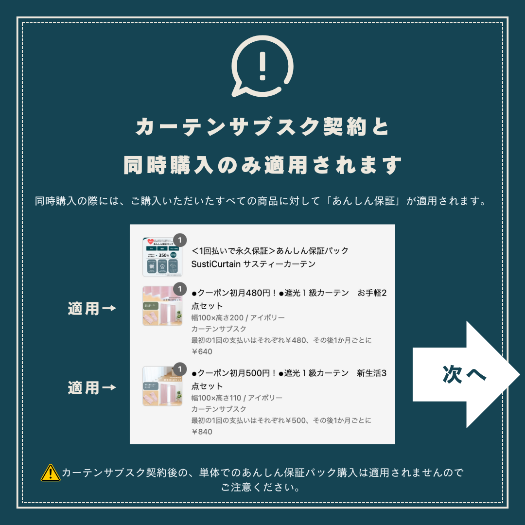 カーテンサブスク商品と同時にご契約いただいた場合にのみ、「あんしん保証パック」が適用されます。